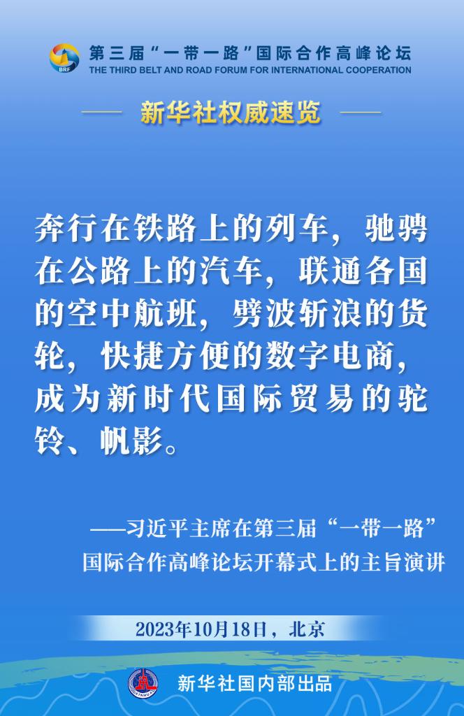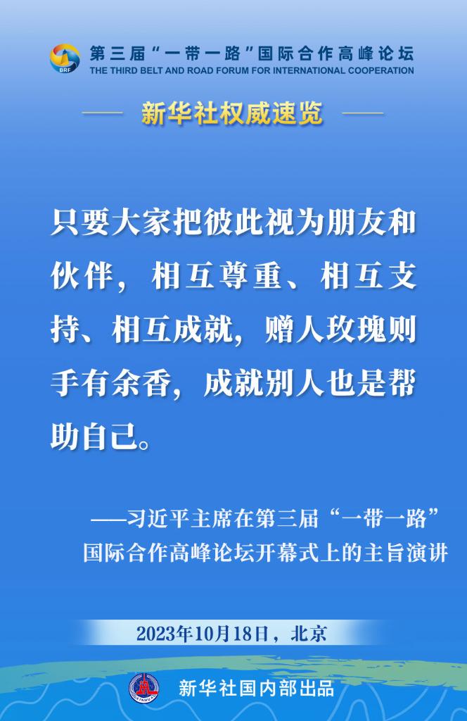 10月18日,國家主席習(xí)近平在第三屆“一帶一路”國際合作高峰論壇開幕式上發(fā)表主旨演講。一起來看金句。