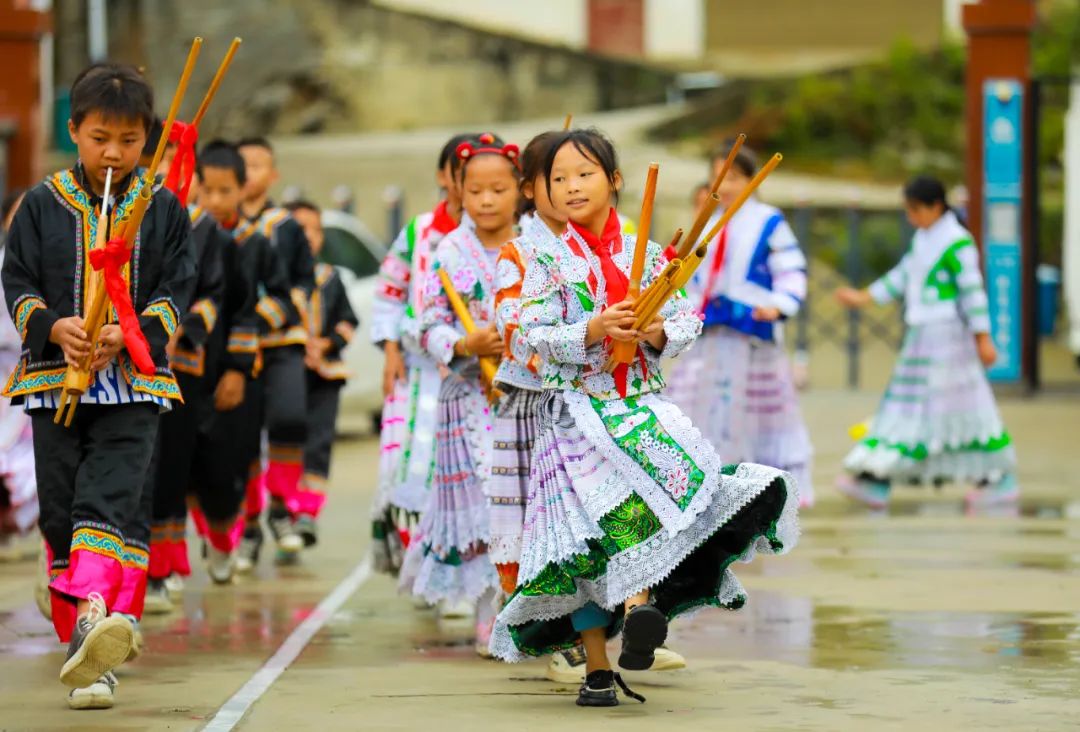 9月22日,貴州省黔西市新仁苗族鄉折溪小學的小學生在練習蘆笙舞。通訊員 周訓超 攝