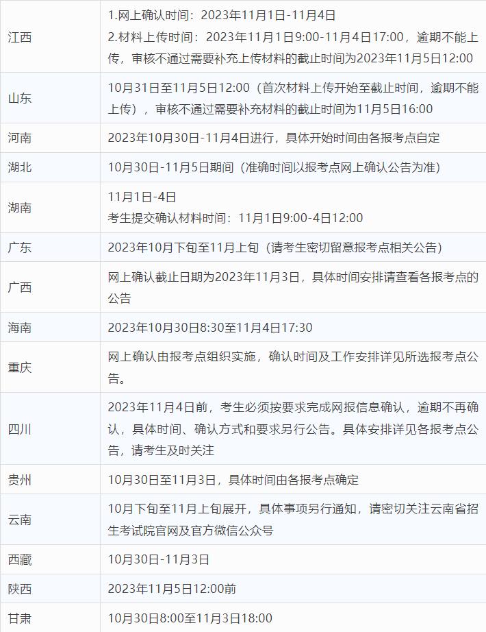 考生網上確認的具體材料要求、材料提交時間、報考點審核時間等請查看報考點公告。如有疑問,可咨詢報考點。