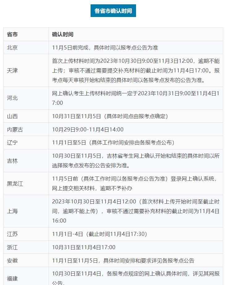 所有考生(不含推免生)均應當在規定時間內在網上核對并確認其網上報名信息,逾期不再補辦。網上確認時間由各省級教育招生考試機構根據國家招生工作安排和本地區報考組織情況自行確定和公布。