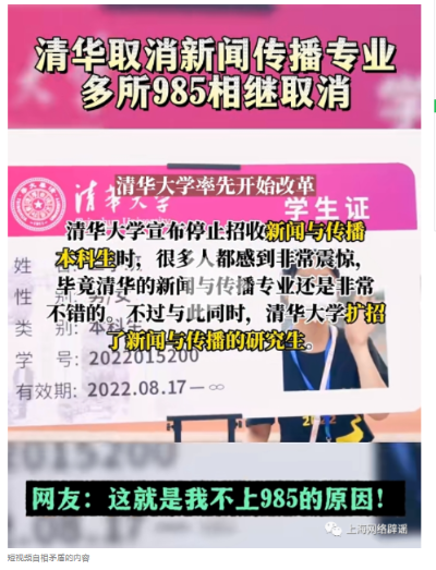 所以,該視頻所稱的“多所985取消(新聞傳播學專業(yè))”都是錯誤的。
