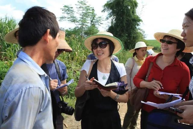 2012年,云南日報報業集團熊燕(左三)在臨滄市雙江拉祜族佤族布朗族傣族自治縣采訪。