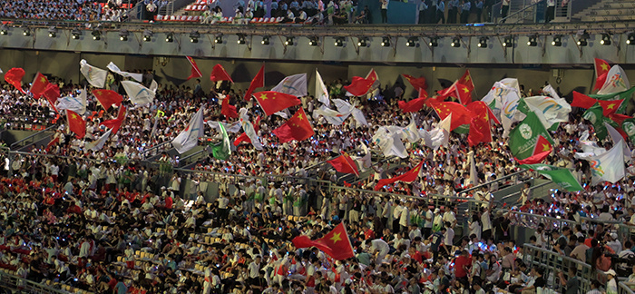 焰火升騰,旗幟翻飛