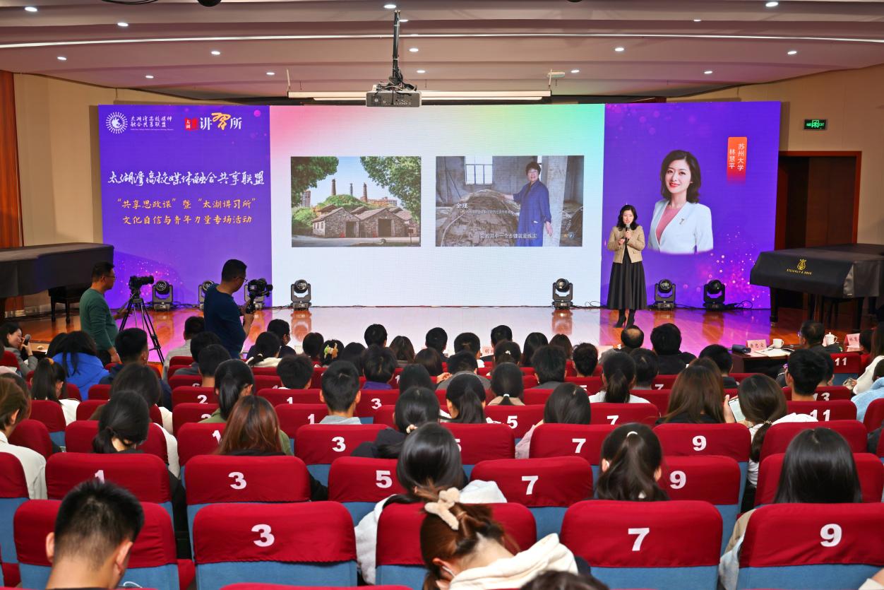 活動上,江南大學唐忠寶教授以《從激越風雨論家國的書生意氣談起》為題,結合時事新聞、現實案例,引導廣大學生心懷“國之大者”,樹立報國之志、牢記強國有我。蘇州大學林慧平副教授以《雙面“繡”姑蘇:百煉成“金”》為題,講述了蘇州如何在傳統與現代的結合上,堅守歷史文化傳承,推動城市高科技創新和高質量發展。常州大學黃明彥教授以《從季札三讓到常州三杰——常州君子人格的文化密碼》為題,與大家分享了常州君子們的人格密碼與愛國情懷,讓在座師生全面了解了“常州三杰”精神的文化成因和價值意蘊。嘉興學院李云波博士以《堅定文化自信,賡續紅色血脈》為題,號召廣大青年傳承紅船精神,堅定信仰信念,為民族復興貢獻力量,為社會發展奉獻才智。湖州師范學院何燕博士以《那一年》為題,帶領青年聽眾走進滄桑百年,展示了先輩們篳路藍縷、披荊斬棘的奮斗史,點燃青年人心中的愛國愛黨之光……五位一線思政教師打破時空界限和學校壁壘,用小切口反映大發展,以小故事詮釋大情懷,有針對性地回答好當代青年的時代之問。
