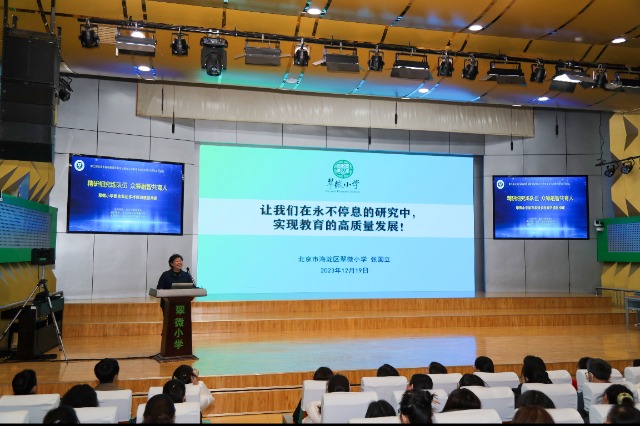 翠微小學(xué)教育集團黨委書記、校長張國立作報告。學(xué)校供圖