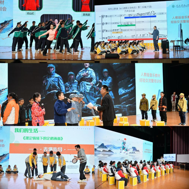 此次培訓會精彩紛呈,既有課程展示、教師培訓、校際交流,又有藝術普及、學術研討和音樂演出。12月18日至19日,培訓會向全國教研員與一線教師展示了人民教育出版社第十二套義務教育教材的課程,涵蓋小學、初中、高中3個學段,音樂、戲劇、舞蹈3個學科。來自北京、天津、河北、河南、安徽、江西、黑龍江、貴州、寧夏等地的教研團隊攜手人民教育出版社音樂編輯室,共同呈現了22節公開課與說課展示,以更直觀的方式讓大家了解新教材課程的創新性與多樣性。此外,人民教育出版社音樂編輯室策劃了人教版音樂教材童聲合唱音樂會。在揚州市人民政府和教育局的大力支持下,揚州市中小學合唱團的600余位學生于18日晚在揚州運城大劇院進行了精彩演出。