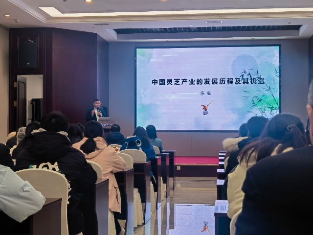 12月23日,江蘇農(nóng)林職院學(xué)生聆聽江蘇安惠生物科技有限公司董事長陳惠關(guān)于“中國靈芝產(chǎn)業(yè)的發(fā)展歷程及其機遇”講座。