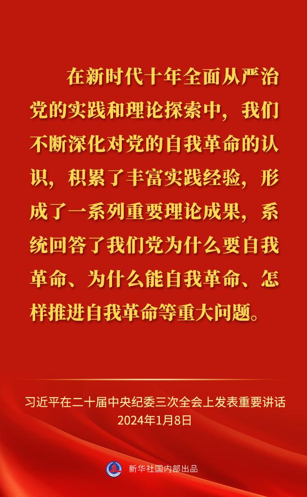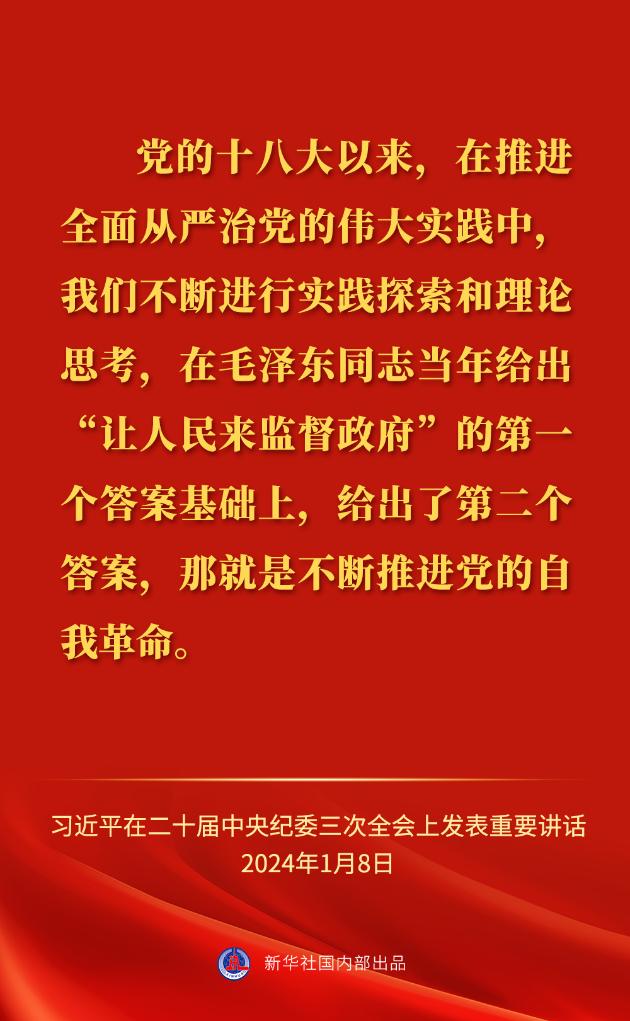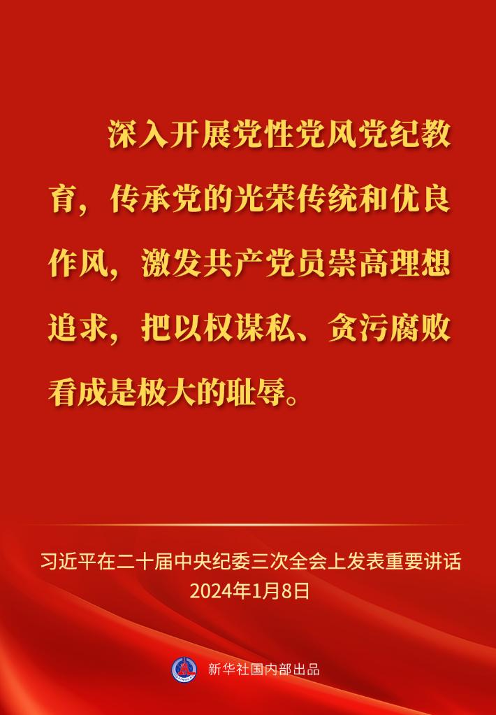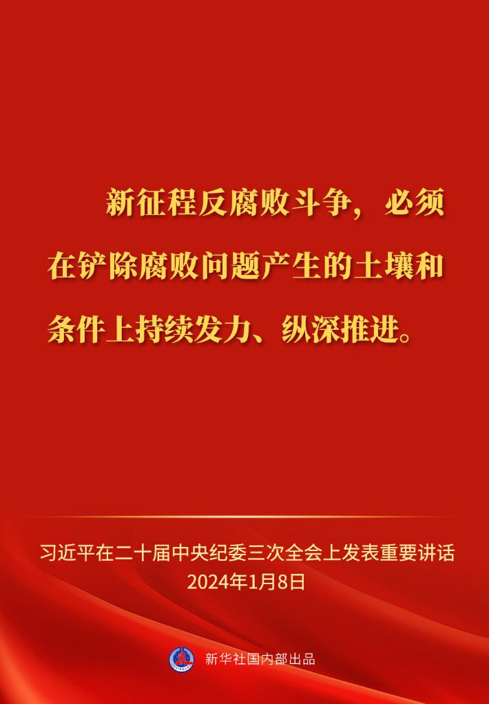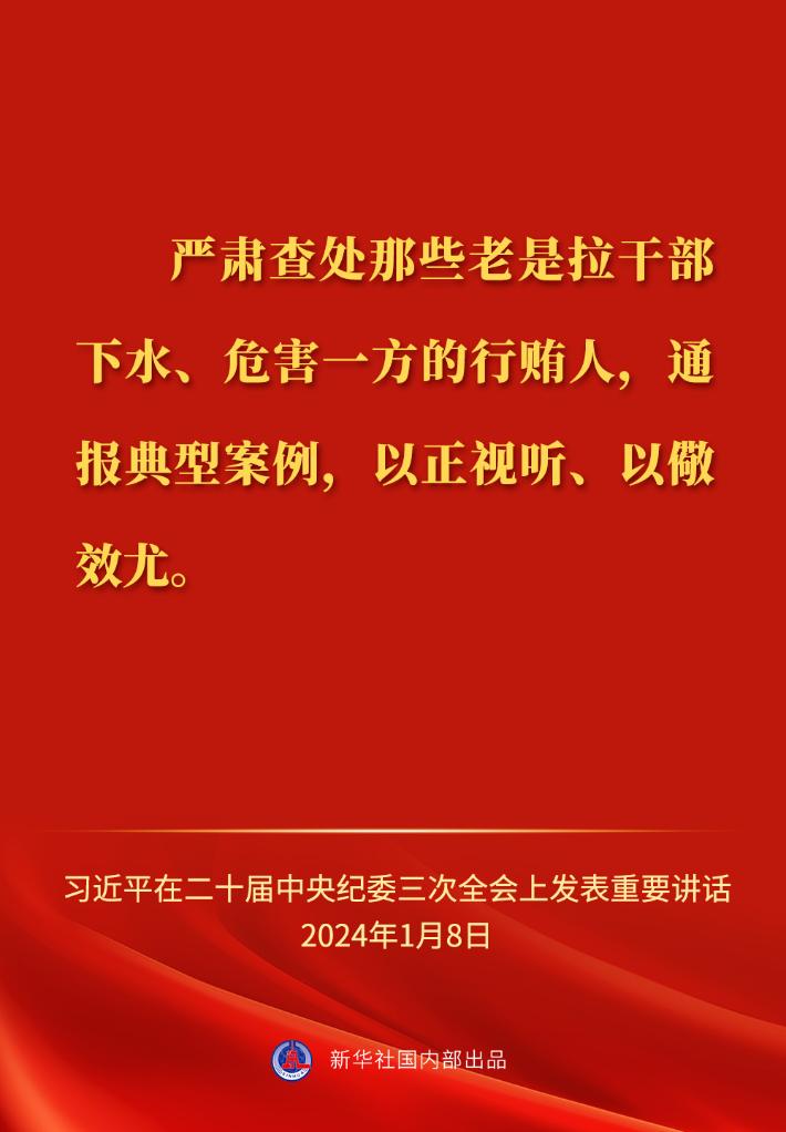 中共中央總書記、國家主席、中央軍委主席習近平8日上午在中國共產(chǎn)黨第二十屆中央紀律檢查委員會第三次全體會議上發(fā)表重要講話,一起來看金句。