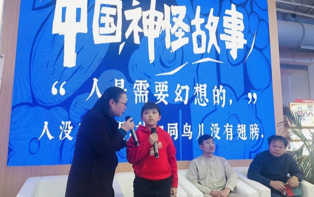 中國教育報-中國教育新聞網訊(記者 郜云雁)“南海的天帝叫儵(同倏),北海的天帝叫忽……中央的天帝叫混沌,天生是個好脾氣,任他們在他跟前來來往往,從不干涉,有時還順便熱情款待他們,招待得非常周到……一天,儵和忽又碰在一起,談起混沌,打心眼里感激,商量著該怎樣報答混沌的一番恩德……”1月12日下午,在2024年北京圖書訂貨會上海世紀出版集團活動展臺,來自北京朝陽區白家莊小學三年級的堂堂,正在繪聲繪色地為現場觀眾講“混沌開竅”的故事。