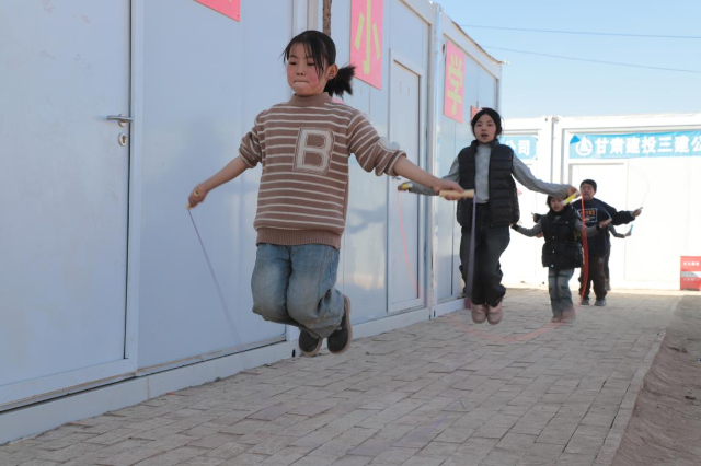 2023年12月25日,還是帳篷學(xué)校的大河家臨時(shí)教學(xué)點(diǎn)舉行了莊嚴(yán)的升國(guó)旗儀式,標(biāo)志著大河家小學(xué)臨時(shí)教學(xué)點(diǎn)復(fù)課,如今師生在更暖和的板房教室共度寒假。因?yàn)楸舜硕际青従樱袝r(shí)教師會(huì)做飯和學(xué)生一起吃,整個(gè)安置點(diǎn)就是個(gè)大家庭。“學(xué)校和家在一起,我每天都能和同學(xué)們一起玩,特別開(kāi)心。”馬麗娜說(shuō)。