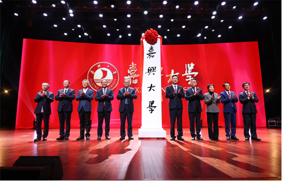 張雁云、陳偉、李耀武、舒培冬、李軍、高玲慧、陳利眾、帥燮瑯、盧新波、陸軍共同為嘉興大學(xué)揭牌