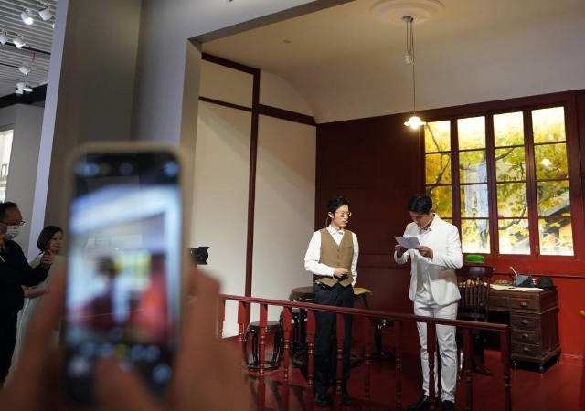 2023年5月18日晚,中共一大紀念館原創(chuàng)的情景黨課《又見新青年》在展廳內(nèi)實景演出。自2021年中國共產(chǎn)黨成立100周年之際全新開放以來,中共一大紀念館對紅色文化的創(chuàng)新傳播正不斷“圈粉”年輕人。新華社記者 劉穎 攝