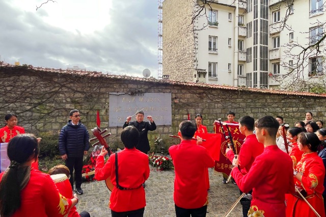 第二場音樂思政課程《奏國際歌 鑄革命魂》于當(dāng)?shù)貢r間11日上午在拉雪茲公墓巴黎公社紀(jì)念墻前舉行。