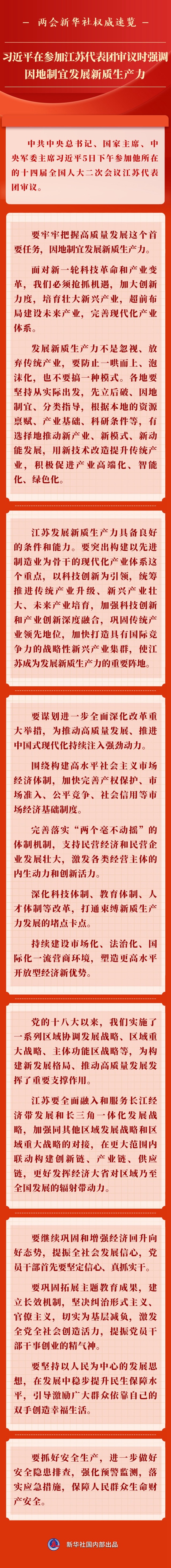 兩會(huì)新華社權(quán)威速覽丨習(xí)近平在參加江蘇代表團(tuán)審議時(shí)強(qiáng)調(diào) 因地制宜發(fā)展新質(zhì)生產(chǎn)力
