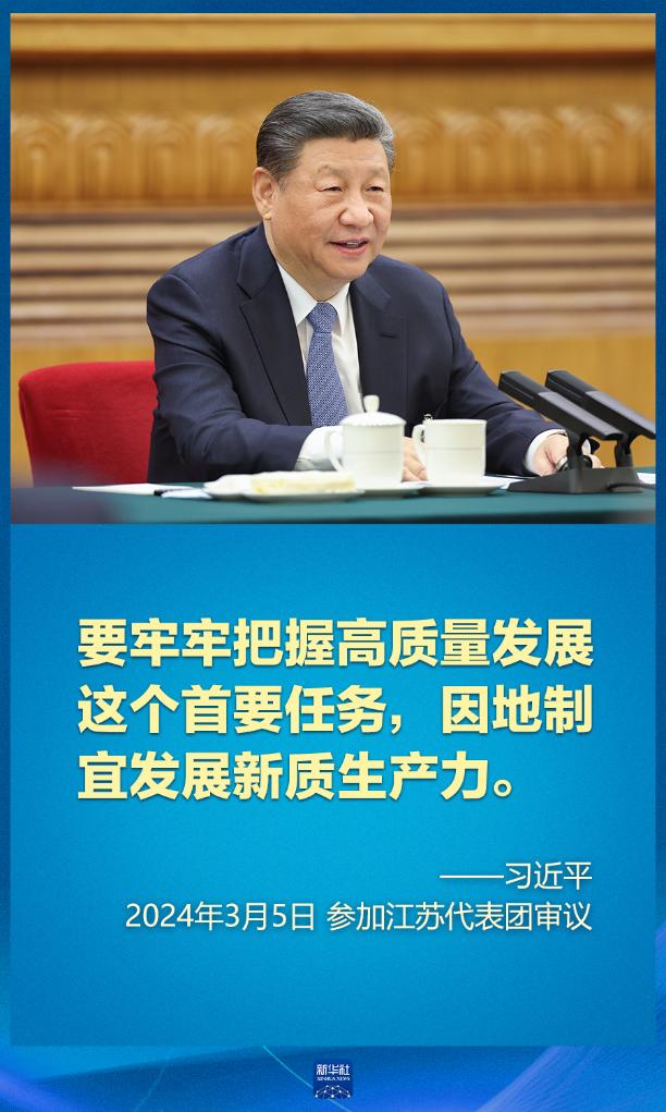 5日下午,習近平在參加他所在的十四屆全國人大二次會議江蘇代表團審議時強調,因地制宜發展新質生產力。
