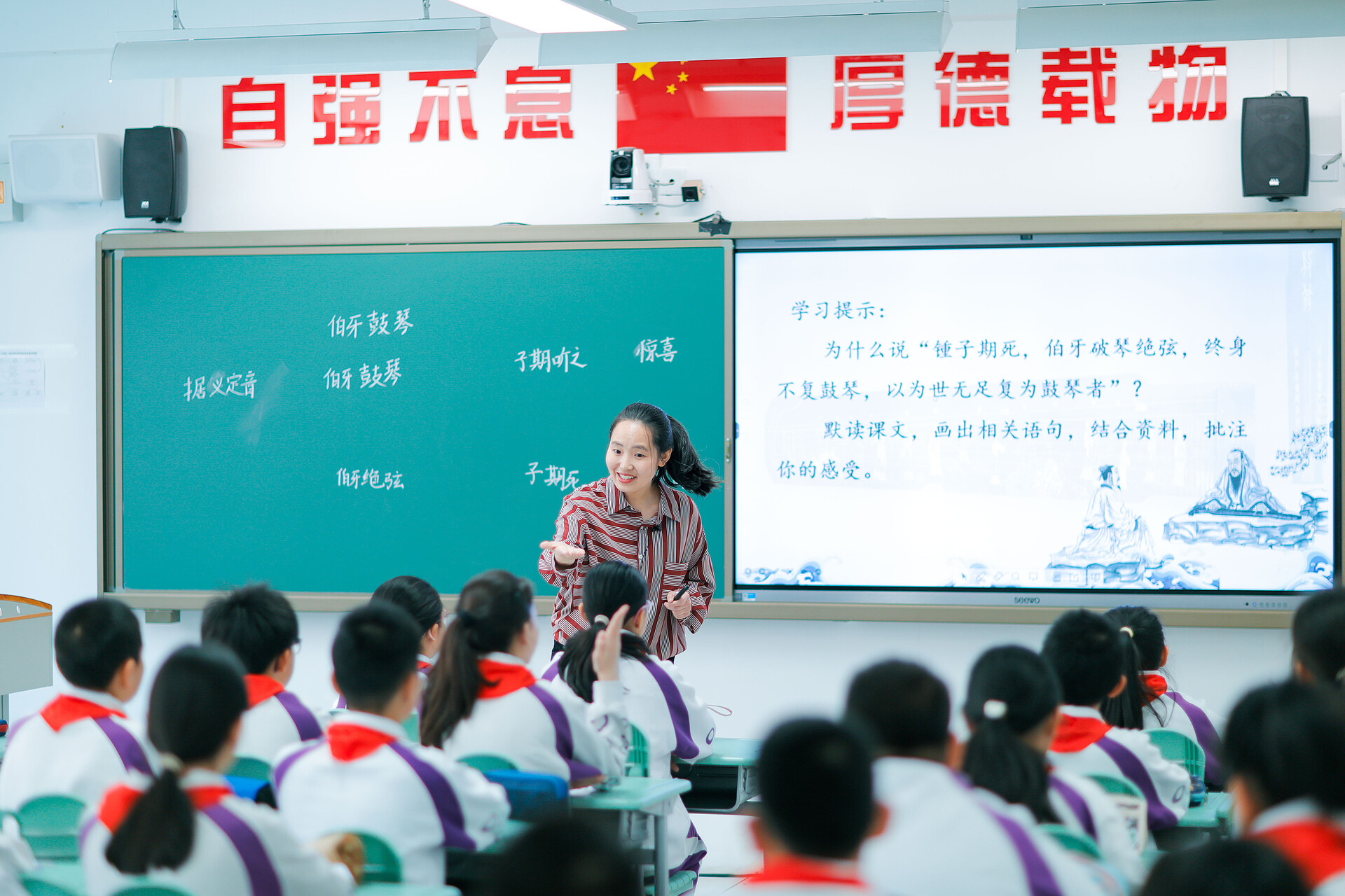 在誦讀朗讀與課堂教學深度融合研究課觀摩階段。來自北京、山東、河北等省市的8名初中和小學教師分別展示了誦讀朗讀與課堂教學深度融合研究課。各個教學現場在聽評課環節,執教教師就誦讀朗讀與課堂教學融合的教學設計等方面做了介紹,與會教師和專家進行了深入交流。