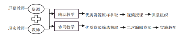 2. 協同教學型“雙師課堂”。在具有專任課程教師的情況下,為提升課程教學質量,教師可協同教學設計,合理分配平臺優質數字教育資源使用與自身教學活動,開展“屏幕教師”與自己共同授課,實現“屏幕教師”精品資源突破重難點,“現實教師”現場拓展講練的教學模式。