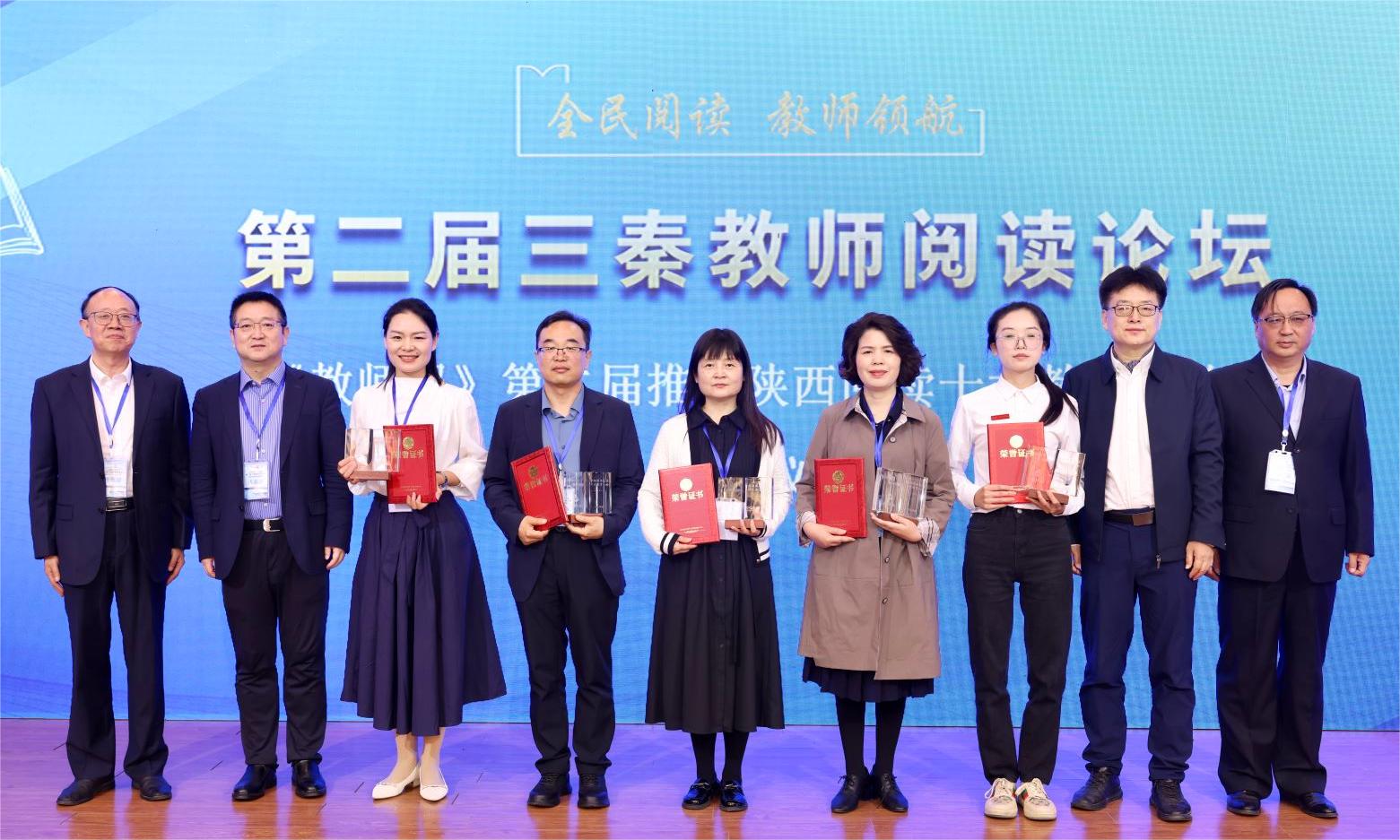 與會領導嘉賓向《教師報》第二屆推動陜西閱讀十大教育人物及關注人物頒獎。主辦方供圖