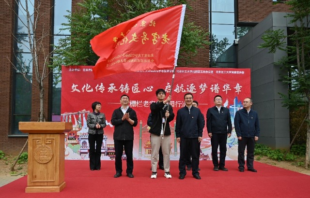 活動現(xiàn)場,北京化工大學(xué)與大柵欄街道共同為“老字號文化育人基地”揭牌,并向北京化工大學(xué)“老字號文化傳播隊(duì)”授予旗幟。紅旗飄飄映傳承,學(xué)校通過搭建老字號文化育人平臺,讓廣大師生近距離感受中華優(yōu)秀傳統(tǒng)文化的活力和現(xiàn)代價值,增強(qiáng)文化自信和民族自豪感,為老字號煥新發(fā)展集聚青年智慧。