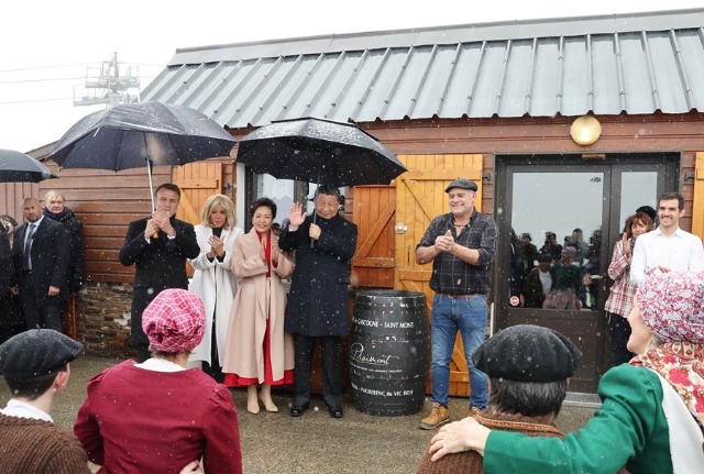 習(xí)近平說(shuō),這里的美麗風(fēng)光和特色美食給我留下深刻印象。歡迎更多法國(guó)優(yōu)質(zhì)農(nóng)食產(chǎn)品進(jìn)入中國(guó)百姓家,也歡迎更多友好的法國(guó)人民去中國(guó)參觀訪問(wèn)。