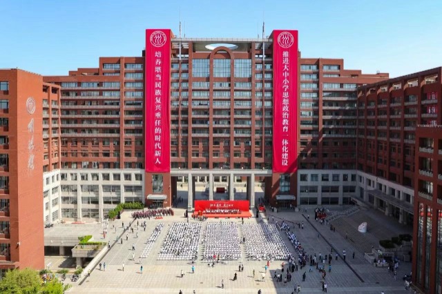 當天,以“傳承紅色基因、浸潤善美心靈”為主題的大中小學思想政治教育一體化建設美育成果展演在明德堂上演,以“七彩少年·紅色傳承·時代創(chuàng)新”為主題的AI賦能創(chuàng)意書畫展在明德廣場展出。