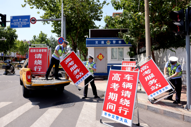 6月6日,山東省棗莊市公安局市中分局交通警察大隊(duì)輔警把高考期間道路交通管制標(biāo)志牌運(yùn)送到各考點(diǎn)執(zhí)勤崗。通訊員 吉喆 孟見(jiàn) 攝