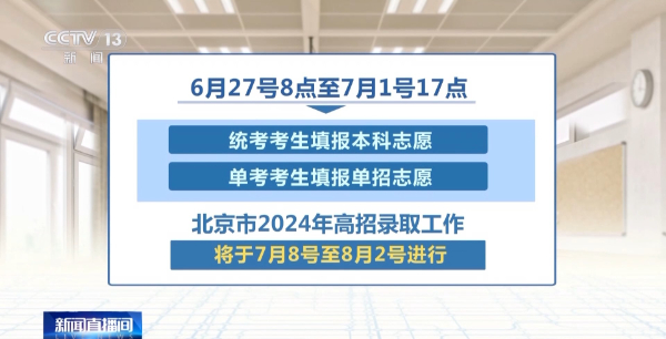 2024年北京市高考成績(jī)將于6月25日中午前發(fā)布。同時(shí),將發(fā)布各批次錄取最低控制分?jǐn)?shù)線和北京市考生分?jǐn)?shù)分布表。6月27日8點(diǎn)至7月1日17點(diǎn),統(tǒng)考考生填報(bào)本科志愿,單考考生填報(bào)單招志愿。北京市2024年高招錄取工作將于7月8日至8月2日進(jìn)行。