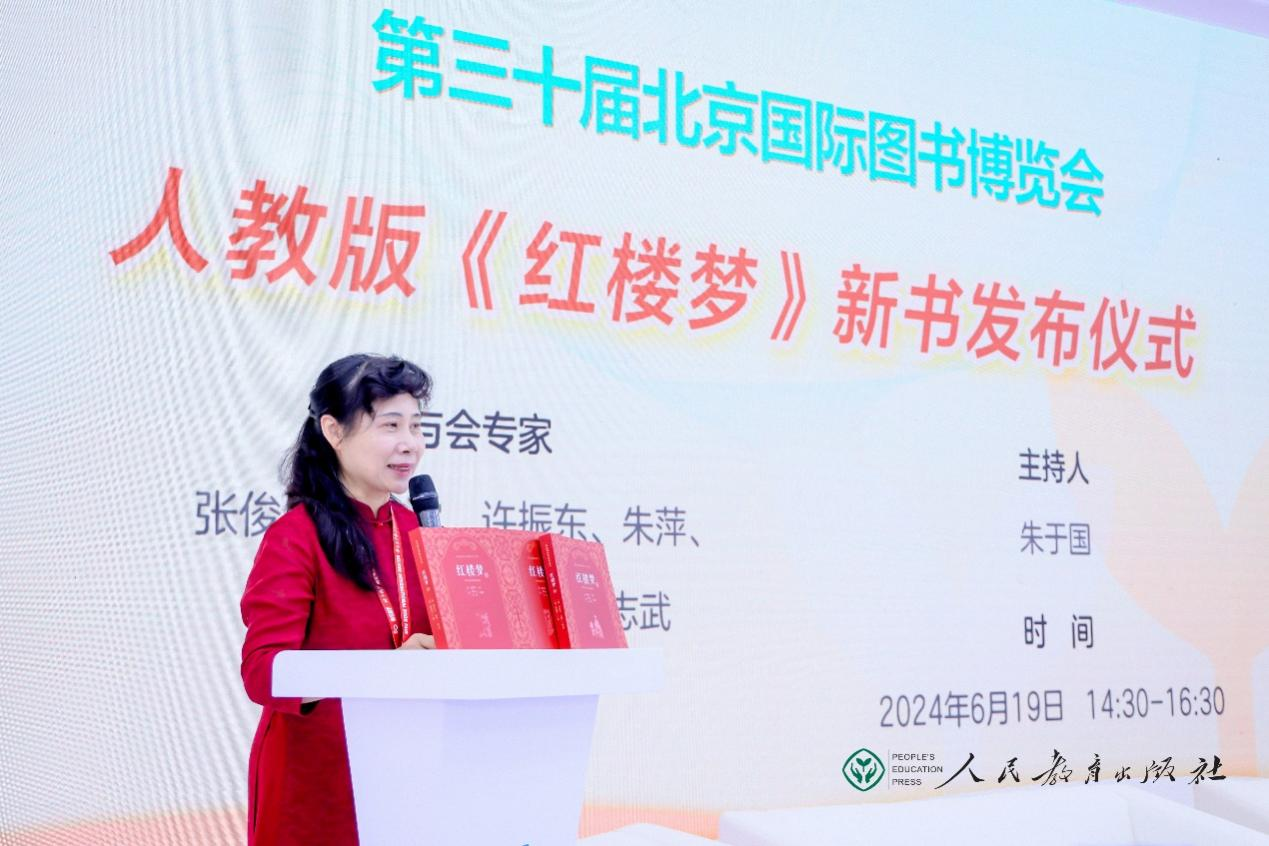 人民教育出版社總編輯王日春介紹了人教社“名著閱讀課程化叢書”的編寫初衷和人教版《紅樓夢》出版的基本情況。他表示,人教社在編研出版基礎教育教材的同時,非常重視推動全民閱讀,設計并推出的“名著閱讀課程化叢書”,通過系統化的課程設計,幫助讀者尤其是中小學生更好地理解和欣賞名著的精髓,深受讀者歡迎。本次發布的人教版《紅樓夢》就是該套叢書的最新產品。《紅樓夢》是中國古代文學中的經典巨著,具有深厚的思想文化內涵、高超的藝術手法,是中華民族共同的文化記憶和寶貴的精神財富,是文化傳承與文化創新的寶貴資源。出版專為中小學生量身打造的人教版《紅樓夢》,對幫助中小學生傳承和理解中華優秀傳統文化,培養文化自信能起到重要的推動作用。