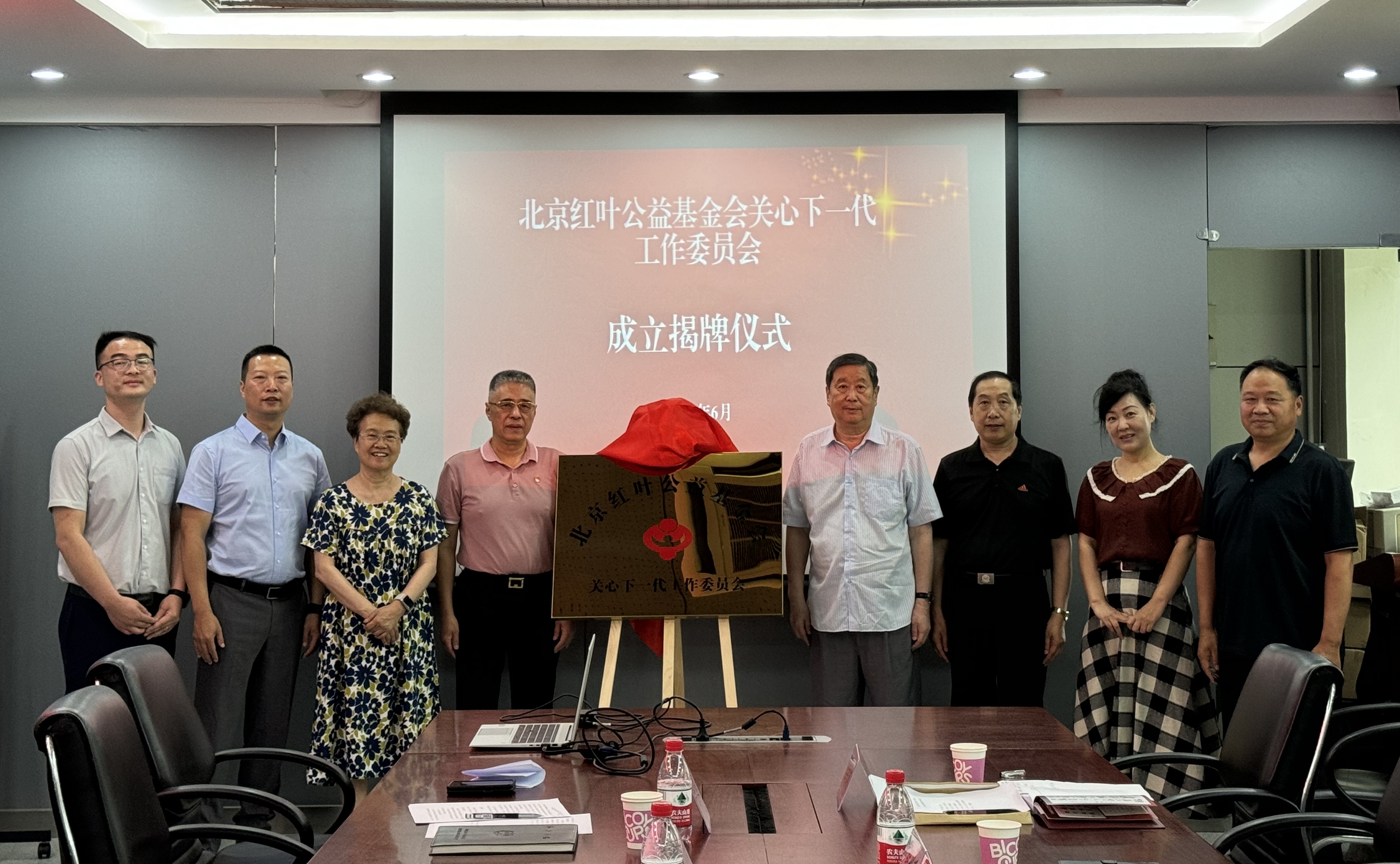活動現場,北京市西城區關工委街道社區專委會主任韓世和,北京紅葉公益基金會黨支部書記張學民共同為“北京紅葉公益基金會關心下一代工作委員會”揭牌。