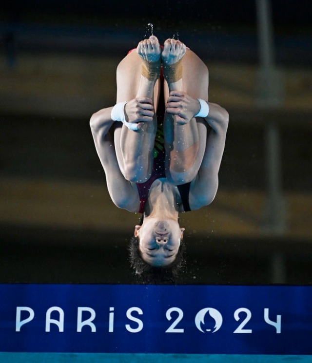 中國選手全紅嬋在巴黎奧運會跳水女子10米跳臺決賽中(2024年8月6日攝)。新華社記者 王鵬 攝