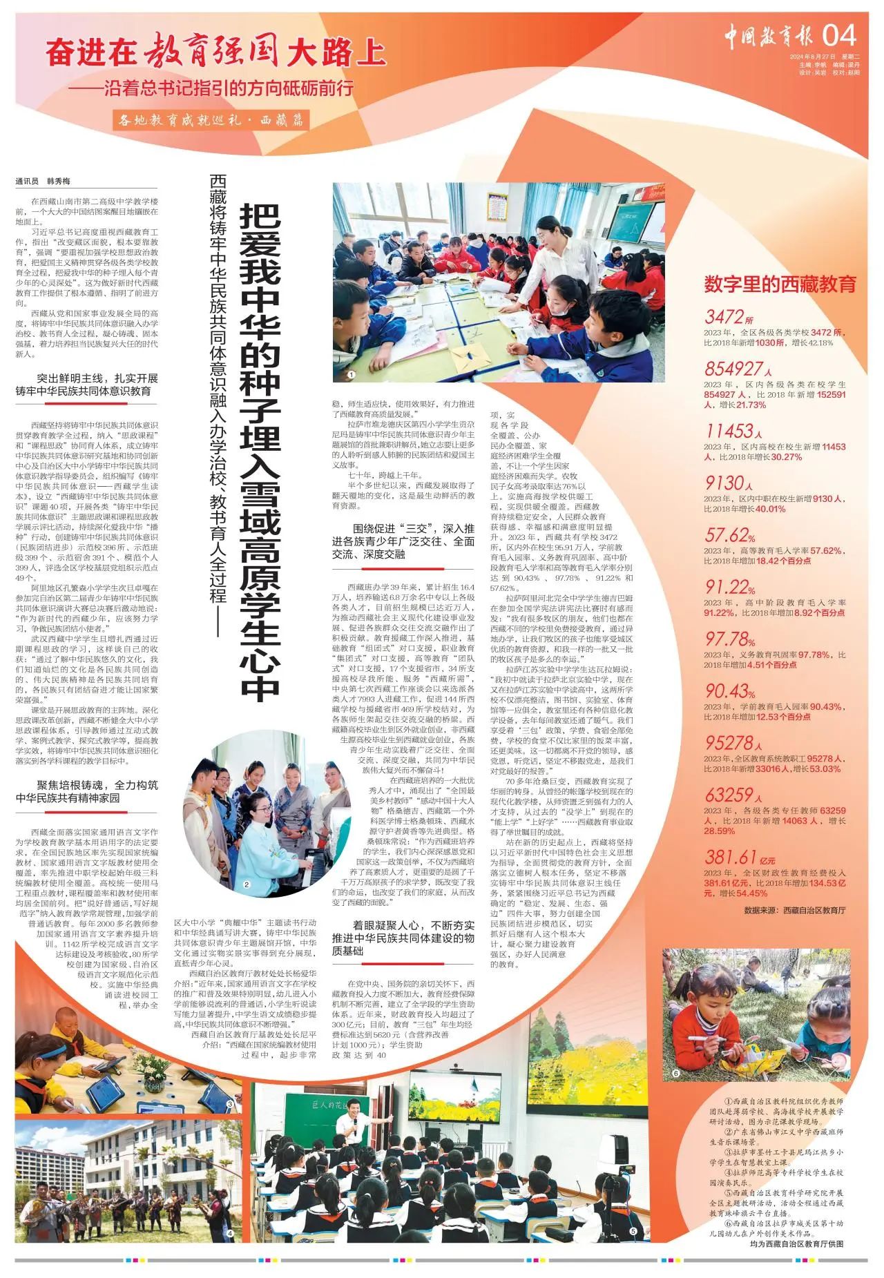 習近平總書記高度重視西藏教育工作,指出“改變藏區面貌,根本要靠教育”,強調“要重視加強學校思想政治教育,把愛國主義精神貫穿各級各類學校教育全過程,把愛我中華的種子埋入每個青少年的心靈深處”。這為做好新時代西藏教育工作提供了根本遵循、指明了前進方向。