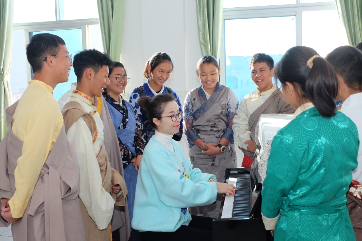 廣東省佛山市江義中學西藏班師生音樂課場景。