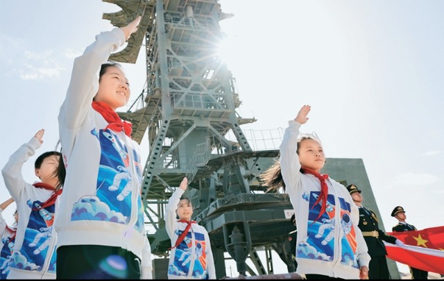 少先隊是建設社會主義和共產主義的預備隊。廣大少先隊員在少先隊這所大學校里立志向、修品行、練本領,從小培養熱愛黨、熱愛祖國、熱愛人民的情懷,展現出朝氣蓬勃的精神風貌。2024年4月24日是第九個“中國航天日”,“紅領巾愛祖國——我心中的五星紅旗”主題活動在中國酒泉衛星發射中心東方紅衛星發射場舉行。圖為當日,來自內蒙古、甘肅、四川等地的少先隊員在中國酒泉衛星發射中心東方紅衛星發射塔架下敬隊禮。 新華社記者 金立旺/攝