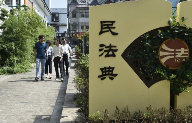 浙江省紹興市柯橋區(qū)安昌古鎮(zhèn)里的“民法典走廊”。新華社記者魯鵬 攝