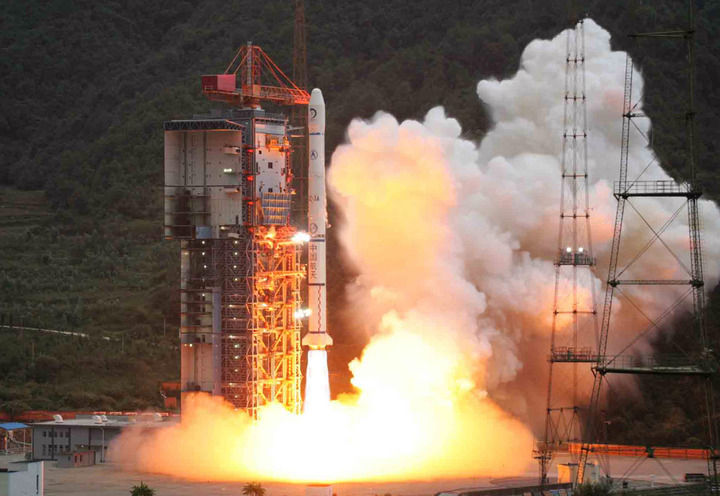 2007年10月24日,搭載著我國首顆探月衛星嫦娥一號的長征三號甲運載火箭在西昌衛星發射中心三號塔架點火發射。新華社記者 李剛 攝