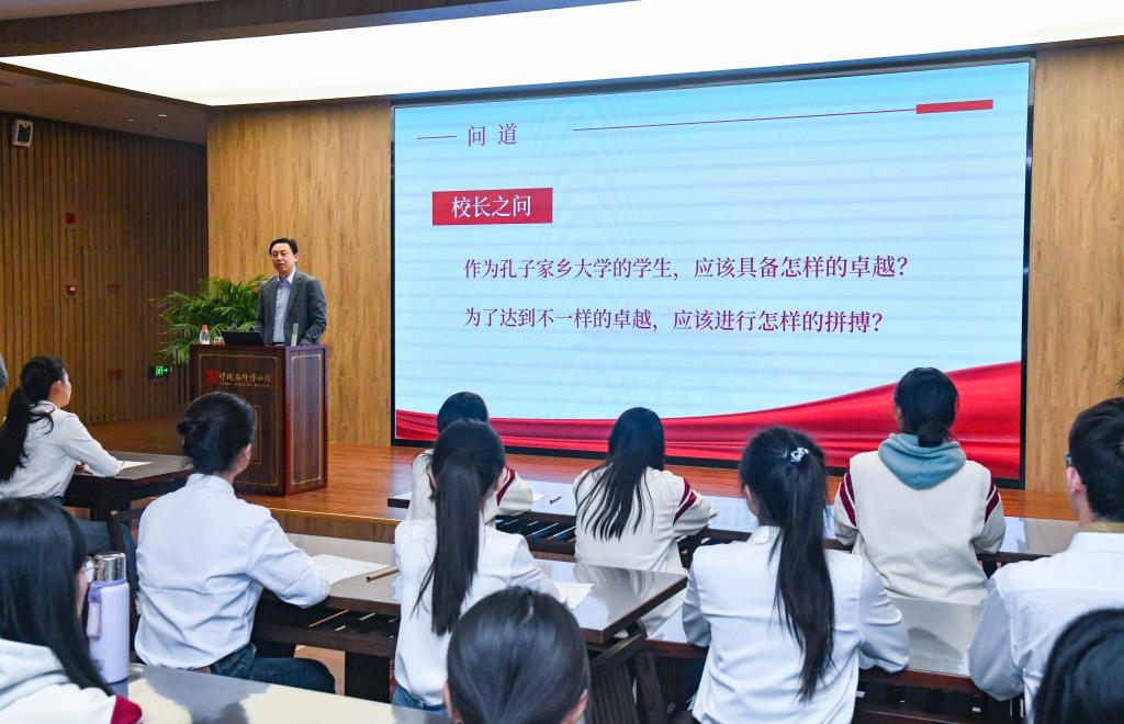 11月6日,曲阜師范大學(xué)舉辦首期教育家精神思政大課,學(xué)校黨委副書記、校長張洪海帶領(lǐng)同學(xué)們走進(jìn)“校長講校長——跨越時空的對話”,通過問道、論道、就道、弘道四個環(huán)節(jié),在教師博物館為青年教師和師范生們打造了一堂教育家精神思政大課。