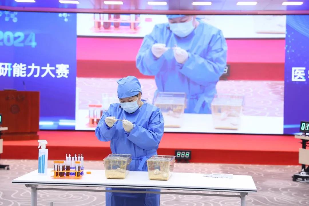 據了解,本次比賽題目由主辦單位、承辦單位共同編寫,內容涉及實驗基本技能、實驗室安全知識、實驗教學能力、思政教育能力等多方面。為豐富比賽形式、增加互動參與,決賽共分為三個環節:實驗技能考核、教學能力展示和實戰情景模擬,考察問題緊密結合醫學科研實際和最新科研進展,對參賽隊伍的職業基本能力、科研創新能力、團隊協作能力、綜合應變能力等職業素養水平進行了全方位、多層面考察。