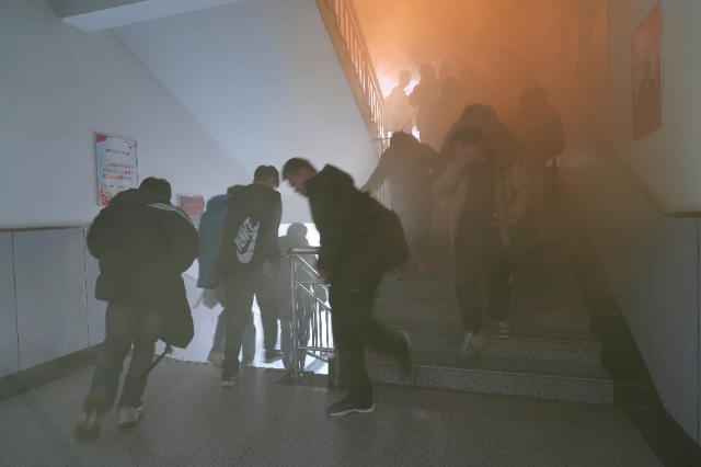 各二級學院也有序開展了教學樓疏散演練活動。師生在規定時間內沿著安全通道快速撤離,展現了良好的應急反應和組織能力。此外,學校還邀請了消防救援站官兵與校內微型消防站、義務消防隊聯合開展高層建筑物救援演練,為師生提供了真實的救援體驗。