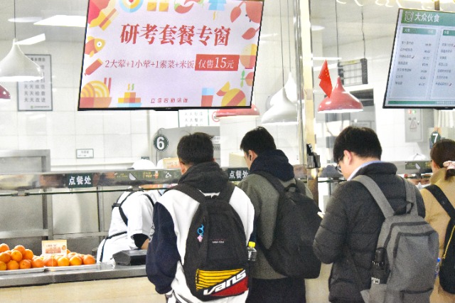 中國教育報-中國教育新聞網訊(記者 任朝霞)研究生考試期間,上海立信會計金融學院推出系列暖心關懷行動,全力為考研學子保駕護航。學校食堂設立專窗供應考研套餐,原價20元,考研當日以15元的實惠價格保障研考學生營養健康供給,就餐后還可領取心想事“橙”橙子一只,為考研學子加油打氣。在餐桌上,還精心放置了帶有考研祝福的明信片,讓考研學生在就餐和休息時能放松心情,以最佳狀態迎接考試。