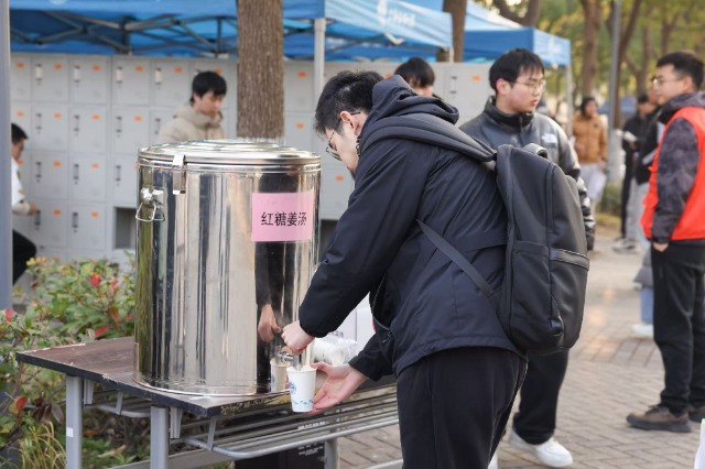 上海海事大學為考生提供免費姜茶暖心助考。學校供圖