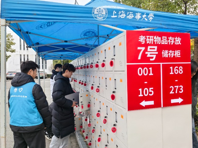 今年,上海海事大學有1300余名考生在臨港校區參加考試。為了給考生構建一個安全、公正、有序、溫暖的考試環境,學校除了繼續為考生提供補打印準考證、免費姜茶等服務,還專門購置了1800個體積較大的存放柜。考生不僅可以存放手機,還可以存放平板、筆記本等體積較大的電子產品及個人物品,并有工作人員、志愿者等在一旁協助存放。
