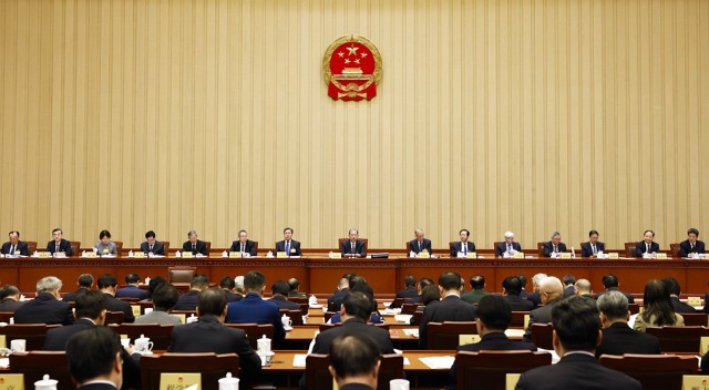 2月24日上午,十四屆全國人大常委會第十四次會議在北京人民大會堂舉行第一次全體會議。趙樂際委員長主持。新華社記者 黃敬文 攝