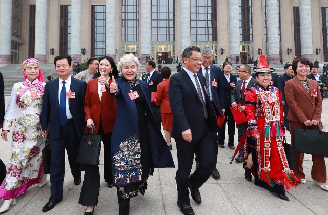 十四屆全國人大三次會議11日下午3時在人民大會堂舉行閉幕會。會議結束后,代表們走出會場。中國教育報-中國教育新聞網記者 張學軍 攝