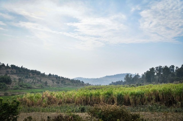 2024年8月15日拍攝的盧旺達(dá)南方省胡耶區(qū)的菌草田。新華社記者 韓旭 攝