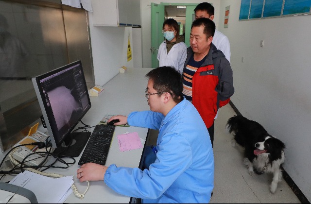 “來,琪琪,別動,我們很快就好。”3月23日,在揚(yáng)州大學(xué)動物醫(yī)院里,負(fù)責(zé)拍片的郭龍醫(yī)生一邊輕聲安撫,一邊穩(wěn)穩(wěn)扶住寵物犬的身體,將它輕輕放在高頻數(shù)字式X光機(jī)的檢查臺上。主人郜先生站在一旁,神情有些焦急。他告訴醫(yī)生,近半年來,自家寵物狗“琪琪”的雙后肢逐漸無力,甚至出現(xiàn)了跛行癥狀,這讓家人們心急如焚。