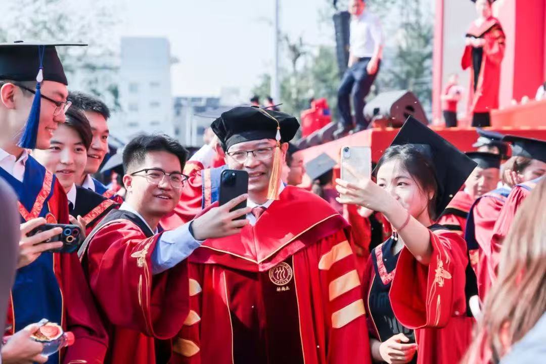 畢業生代表還向多校區教學科研、行政教輔、學生工作、綜合保障等教職員工代表,向醫療救護、人民警察、消防救援人員、社區街道等方面工作代表獻花。