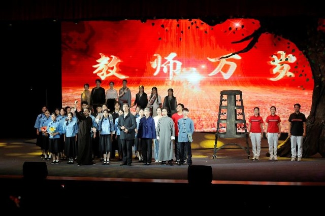 演出共分為四幕,從李大釗“鐵肩擔道義”的信念堅守,次旺俊美與張廷芳夫婦“甘作高原紅燭”的援疆實踐,王梓坤校長倡議設立教師節的初心故事,再到新時代教師的使命擔當,生動詮釋了“言為士則、行為世范”的師表境界與“胸懷天下、以文化人”的弘道追求,實現了教育家精神從理論到藝術表達的創造性轉化。
