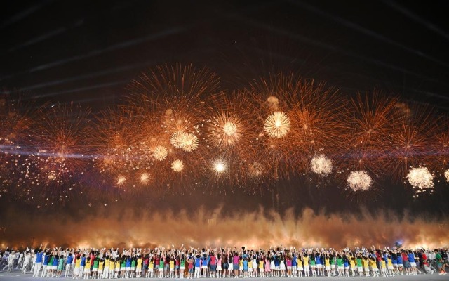 這是8月7日拍攝的開(kāi)幕式上的焰火表演。新華社記者 陳振海 攝