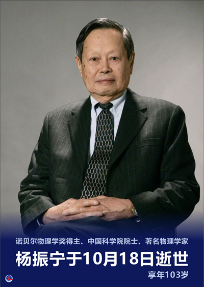 新華社北京10月18日電(記者 魏夢佳)記者從清華大學獲悉,諾貝爾物理學獎得主、中國科學院院士、著名物理學家楊振寧于10月18日在北京逝世,享年103歲。