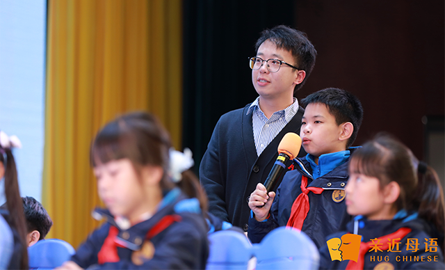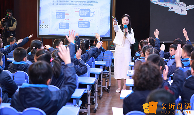 浙江省杭州市天長(zhǎng)小學(xué)語(yǔ)文教師陳棋凱現(xiàn)場(chǎng)執(zhí)教閱讀微課《獵人海力布》。親近母語(yǔ)供圖